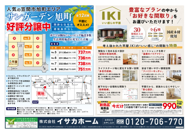 笠間展示場TEL:0296-70-1200 / FAX:0296-70-1201