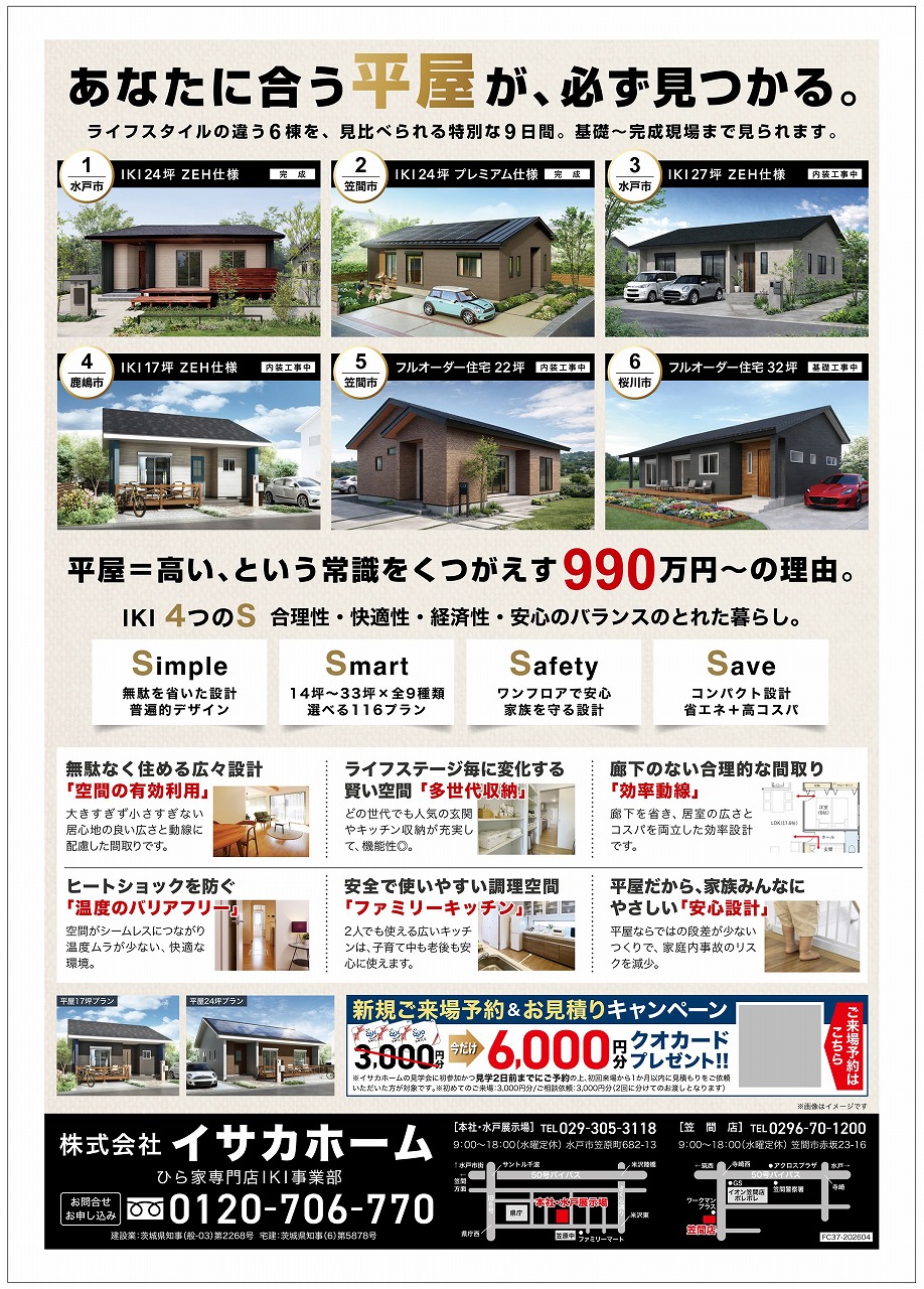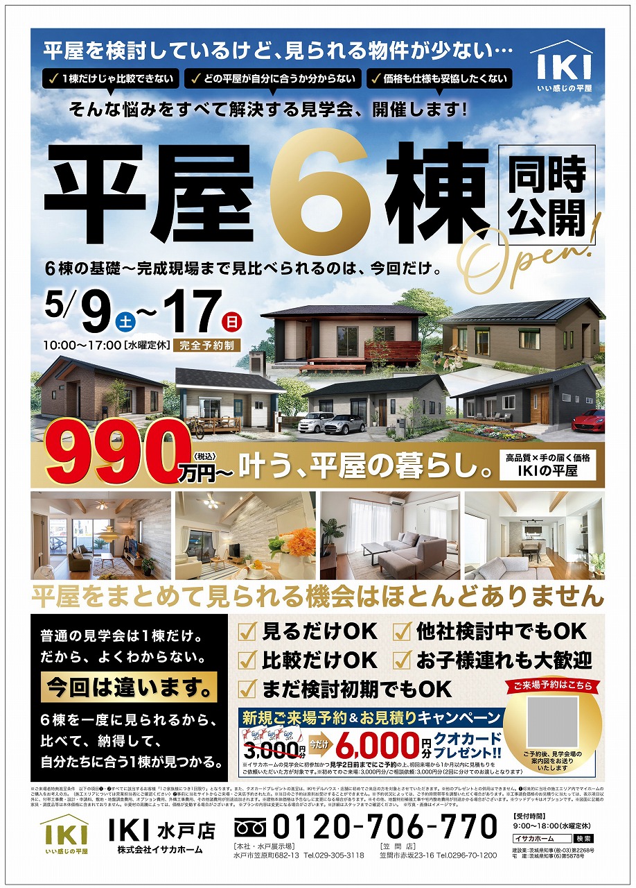 平屋6棟同時公開